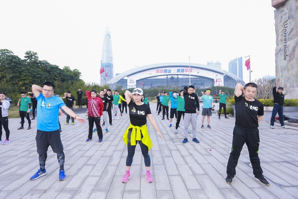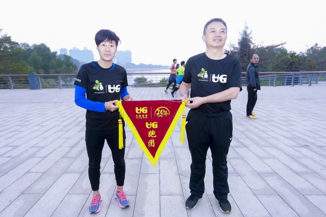 ? ? ? ?在深圳,晨曦中的深圳灣公園別有一番景致,早上7時(shí),深圳地區(qū)的小伙伴們已經(jīng)在大運(yùn)火炬塔廣場(chǎng)集合到位?;顒?dòng)伊始,UG跑步學(xué)堂總教頭李季教練向UG跑團(tuán)授旗,標(biāo)志著UG跑團(tuán)正式成立,開(kāi)啟了跑團(tuán)的新元年。?